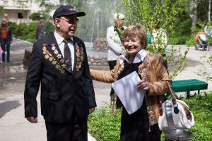 Multicolored flags, spring flowers, elegant veterans with St. George ribbons on the lapels of jackets parade, bravura music of a brass band, a guard of honor of young soldiers from a neighboring school №18 - all part of the holiday, the holiday of the Great Victory.