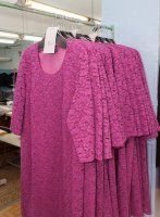 "Vestra" produces from 8.5 to 10 thousand garments in a week. There are several clothing lines: for business women, the Samson line (large sizes), and the youth style as well. These are super fashionable sports bombers, elegant long dresses, bright jackets, skirts, blouses, short coats. Male trench coats we were shown in the style of James Bond. Women's raincoats are in the same style. This is an order of an Italian company.