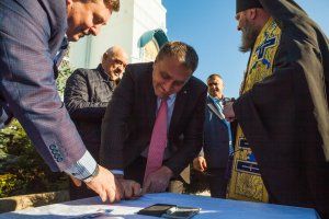 At the end of the service, a solemn ceremony was held to extinguish a postage stamp issued in honor of the 220th anniversary of the day of the illumination of the throne of the Intercession Church of the Russian Orthodox Church. The right to make the first print of a new postage stamp was granted by the Speaker of the Parliament Alexander Shcherba.