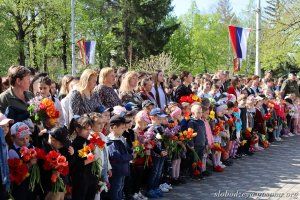 Flowers were laid at the end of the rally; the column was led by the youngest descendants of the generation of winners – pupils of the “Ivushka” and “Albinutsa” child development centers.