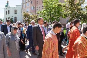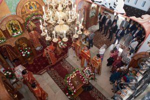 The Divine Liturgy in the church was served by the Metropolitan of Chisinau and All Moldova Vladimir, Archbishop of Tiraspol and Dubossary Savva. At the end of the service, a procession around the church took place. Then all residents of Dnestrovsk were congratulated by the Chairman of the Supreme Council Alexander Shcherba, for whom Dnestrovsk is a small homeland. His parents came to the Komsomol construction site "Moldavskaya GRES". The future speaker grew up in Dnestrovsk, graduated from local school No 2.
