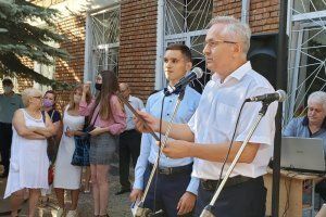 The deputies of the Komsomolsky district Viktor Krondev, Pavel Solodky and Andrei Volkovich came to visit the students of school number 18 on the Day of Knowledge, by tradition. On behalf of the Deputy of the Supreme Council Andrey Mezhinsky, they conveyed congratulations to the first graders, their parents and teachers.