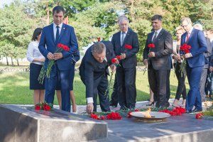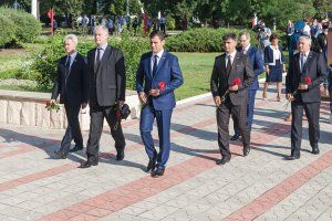 Together with President Vadim Krasnoselsky, Vice-Speaker of the Parliament Galina Antyufeeva, representatives of state authorities, citizens, the guests of honor laid flowers to the monuments of peacekeepers and to General Alexander Lebed, Eternal Flame.