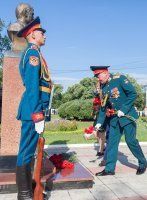 A tour in the territory of the military unit was conducted for honorary guests, where an exhibition of military equipment, weapons, field kitchens was organized. The officials laid flowers to the monument to the joint peacekeeping forces, opened two days ago at the building of the JCC.