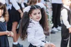 There were sounded school songs, first graders and graduates received congratulations from the guests of honor. The first-graders recited poems, thereby sharing their impressions of the first day of school. They held balloons of red and green colors in their hands, symbolizing the flag of our republic.