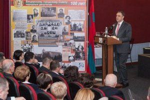 Solemn meeting devoted to the century anniversary of the founding of the representative body of the city was held in Bendery. The festive event was attended by Chairman of the Supreme Council Alexander Shcherba, the first president of Pridnestrovie, Igor Smirnov, members of the Government, deputies of councils of all levels, leaders of municipal and commercial enterprises of Bendery.
