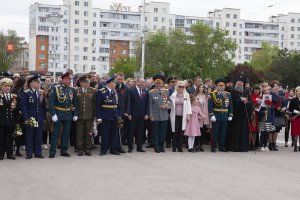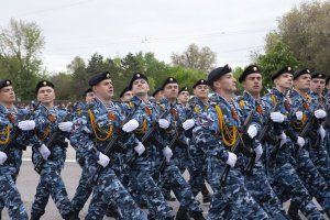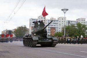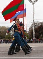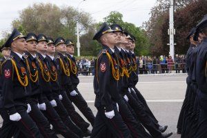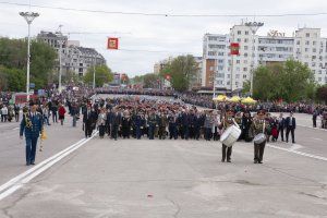T-34 tank - symbol of victory opened the military parade at the square named after Alexander Suvorov. The servicemen of the Pridnestrovian Armed Forces, units of the Operational Group of the Russian Forces in the Pridnestrovian Republic, soldiers of the Border Department of the Ministry of State Security, parade calculations of the Ministry of Internal Affairs and cadets of the Military Institute of Defense Ministry passed. Students of the Republican cadet corps and the Tiraspol Suvorov Military School participated in the Parade. Soldiers of the Guard of Honor Company carried the State flags of Pridnestrovie and Russia and the Victory Banner. The memory of the fallen Soviet heroes was honored with a minute of silence.