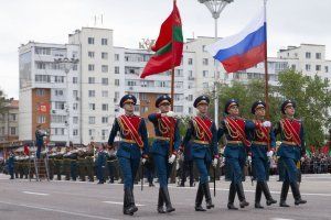 Residents and guests of the capital were able to see demonstrations by servicemen of the Guard of Honor and pupils of the Suvorov School. At the end of the Military Parade, the song “Victory” was played, performed by Pridnestrovian and Russian military personnel to the sound of military orchestras.