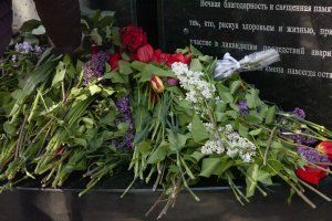 After the grand opening, the rally and the liturgy, fresh flowers formed the monument to the liquidators of the accident at the Chernobyl nuclear power plant.