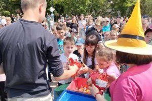 All children were treated to kvass, ice cream, sweet sticks, candies and other sweets. The most active participants in the competitions were given tickets to a cartoon at the Gorky Cinema. The organizers handed out 200 tickets in total.