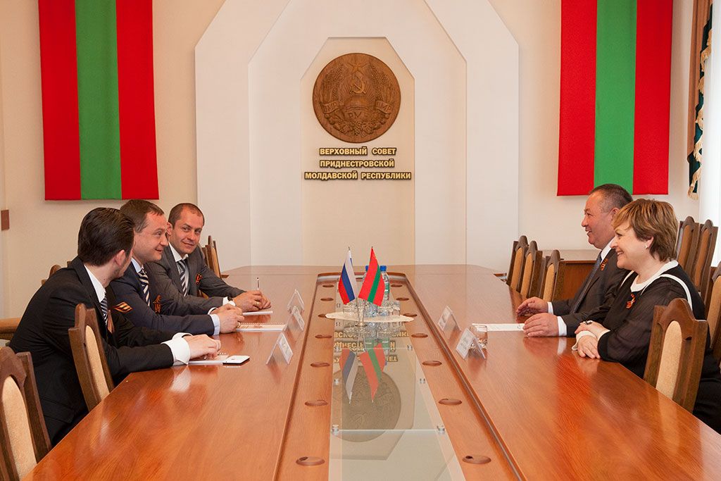Roman Khudyakov every visit to our republic certainly communicates with Pridnestrovian legislators. The current visit was not an exception. The Chairman of the Supreme Council Mikhail Burla and head of the committee on lawmaking Galina Antyufeeva welcomed the Russian guest at the parliament.