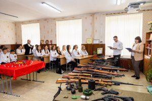 The history lesson at the capital's school No. 11 on the eve of Victory Day turned out to be unusual. There are two classes at once at desks in one classroom – fifth and ninth, and two teachers at the blackboard. The students were treated to excerpts from the march “Farewell of the Slavic Woman” and a kind of anthem of the beginning of the Great Patriotic War – the song “Holy War”. There are very few veterans left in Pridnestrovie 79 years after the Victory. Health and almost a century old respectable age no longer allow to come to children’s schools and talk about what they experienced. Therefore, weapons speak at this class hour instead of veterans. Activists from the “Heirs of Victory” public organization brought machine guns, pistols and grenades, which were once found and neutralized by search engines on the battlefields of the Great Patriotic War. The schoolchildren were told not only about the Soviet weapons that the Red Army had, but about those with which Nazi Germany fought and how the weapons of both sides changed during hostilities.
