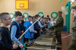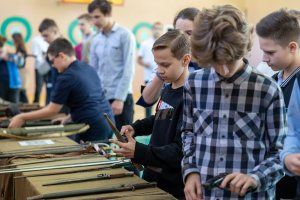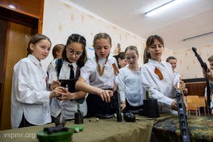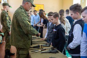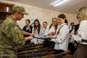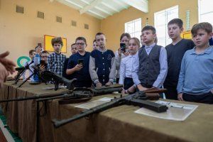 An unusual history lesson was taught by activists of the public movement “Heirs of Victory,” whose mentor and leader is Deputy of the Supreme Council, Head of the Committee on Education, Public Associations and Media Igor Buga. Pupils from several metropolitan schools were shown the very weapons that were used to fight on the fronts of the Great Patriotic War, told about its technical characteristics and how and by whom it was invented.