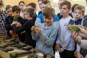 Makarov pistol, parabellum, PPSh, TNT blocks and anti-tank with anti-personnel grenades. All these exhibits are safe and can long ago become museum exhibits, but this lesson is unusual. Therefore, the boys and girls approach the weapon after the introductory words. You can pick it up, be sure to take a photo, ask questions and share your impressions.