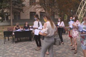 Residents of all cities and districts of Pridnestrovie take part in the international action "Victory Dictation" for the second time. Those wishing to test their knowledge of the history of the Fatherland in the open air write the dictation in Slobodzia. The platform for writing the dictation was organized in the very center of the city - on the territory of the Arcade complex next to the fountain.