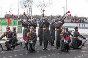 Representatives of the republic’s law enforcement agencies become participants in a military sports festival annually, in any weather, on February 23, on the Day of Defender of the Fatherland, at the stadium in Tiraspol. Today’s event was opened with the raising of Pridnestrovian and Russian flags to the sounds of national anthems. After that, the guard of honor, students of the Tiraspol Suvorov Military School and the Republican Cadet Corps, units of the Operational Group of Russian Forces, as well as the Ministry of Defense, Interior, State Security and the Ministry of Justice, participating in the holiday for the second year, marched in a solemn march. Defenders of the Fatherland welcomed the Commander-in-Chief of the Armed Forces of the PMR Vadim Krasnoselsky. The head of state congratulated the servicemen on February 23.