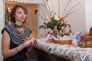 Red color masters painted eggs. Patterns also have their meaning. The tree of life, for example, is a symbol of fertility. Slavic symbols can be found in the canvas. Svetlana Kozhuhar is a master of tapestry, is fond of weaving on bards and plaques. The master demonstrated the way of weaving, which is called twisting.
