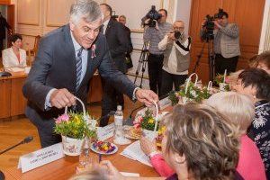 On the eve of the International Women's Day on March 8, the President Vadim Krasnoselsky met with heads of women's non-governmental organizations in the House of Official Reception. The dialogue with "the most charming and attractive" was attended by the Chairman of the Government Alexander Martynov, the head of the Committee of the Supreme Council for Social Policy, Health, Labor, Family and Childhood Issues Sergei Cheban, heads of ministries and departments. It began with congratulations and the delivery of flowers to the representatives of the beautiful half of humanity.