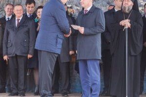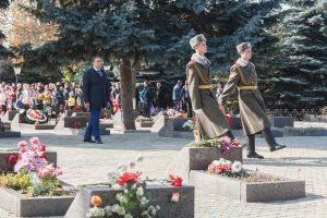 After that, the meeting participants went to the Memorial Complex of Military Glory. As it was noted many times today, the Dubossary always defended their land with courage. They fought fearlessly against the fascists during the Great Patriotic War. Dubossary took the first blow of the Moldovan aggressors in 1992. Undeclared war claimed the lives of 156 defenders of the city of Dubossary. Leaders of the republic, veterans and townspeople laid flowers on the slabs of the heroes.