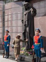 Live flowers lay down to the granite slabs of the Memorial of Glory. Real scarlet sea in memory of those who fought and believed, who gave us the Great Victory is at the Eternal Flame.