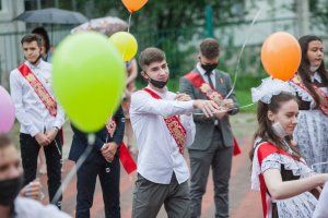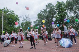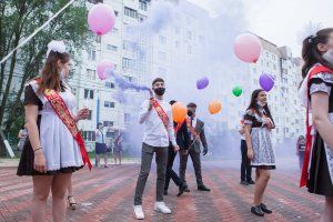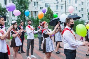 Graduates of the school No. 14 in quarantine creatively parted with childhood. Performance with disinfectors was created, a dance flash mob was organized, not only children, but also their parents sang songs during the last celebratory assembly. It was modestly, without graduation assembly, but sincerely. This year the school has 25 graduates. There are no "three" in the certificates. 6 gold and 2 silver medalists. Deputy Chairman of the Supreme Council, deputy for the constituency No. 32 "Zapadny" Galina Antyufeeva congratulated children on graduating from the school.
