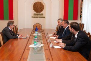 A meeting of the Pridnestrovian parliament Speaker Mikhail Burla with the head of the EU Delegation in Moldova Pirkka Tapiola took place at the Supreme Council. The dialogue was attended by Vice-Speaker Sergei Cheban and head of the Committee on Development of Small and Medium Business and Industry Viktor Guzun.