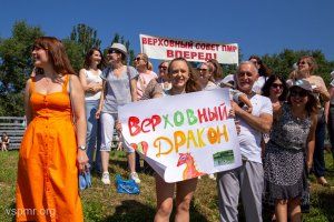 “The President's Family for Healthy Lifestyle” regatta has been taking place at the capital's rowing base since the very morning. 54 non-professional teams are participating. “The Supreme Dragon” team of the Supreme Council called competed among the teams of public and administrative authorities on boats of the “Dragon” class (17 teams in total). The team includes Chairman of the Supreme Council Alexander Korshunov, parliamentarian Pavel Shinkaryuk and members of the Supreme Council staff.