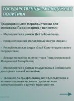 One of the sections of the Development Strategy of the Pridnestrovian Moldavian Republic for 2019-2026 is the state youth policy.