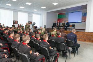 After talking with the cadets for the guests had a tour. The parliamentarians examined the classrooms, dormitories, the gym, the shooting range, and also the museum, where the speaker of the parliament left an entry in the book of honored guests. On behalf of the entire deputies corps, Alexander Scherba wished the school prosperity, and his students to become worthy defenders of their homeland.