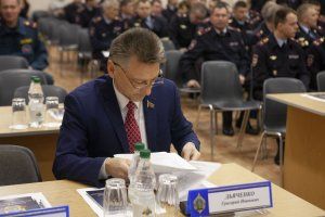 A meeting of the Board of the Ministry of the Interior was held in an expanded format. The President Vadim Krasnoselsky, deputies Grigory Dyachenko, Alexander Korshunov and Oleg Belyakov, representatives of ministries, departments, heads of cities and regions of the republic took part in the adoption.