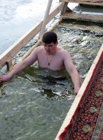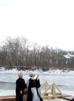 There were installed wooden ramps, steps, cut a hole into which plunged all wishing at the place of the Epiphany bathing. There were tents for dressing for convenience, all the participants were treated to Epiphany bathing fragrant soup, mulled wine, sweet corn and hot tea. Physicians, employees of Slobozeya police department and rescue squad were involved for safety.