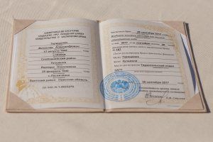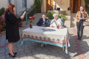 The bridegroom and the bride signed an act of marriage, but before they told each other the traditional "yes". Then the newlyweds were congratulated by the neighbors of the boarding house, as well as honorary guests.