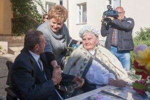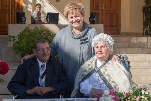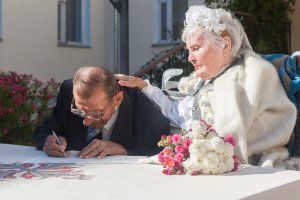 Two residents of the capital's boarding school for elderly citizens and invalids Vyacheslav Aleksandrovich Tereshchenko and Varvara Nikolaevna Kuzmina decided to get married. The bridegroom is 75, the bride is two years older. Newlyweds got acquainted in the boarding school. Vyacheslav Aleksandrovich was beautifully caring for Varvara Nikolayevna, brought her sweet meals, took care of her. She says she fell in love with honesty and principledness. After two years spent close by, he made a marriage proposal. Varvara Nikolaevna, of course, agreed. The wedding was real: the Mendelssohn March, the flowers, the groom in the suit, the bride is all in white.