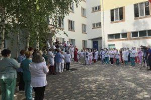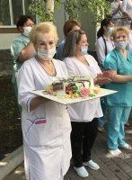Activists organized “Thanks to the doctors” mass event near the building of the Republican Center for Mother and Child today. Tomorrow, people of the noble profession will celebrate professional holiday. Flowers, sweet gifts and songs in gratitude are for them. Galina Antyufeyeva, Deputy Chairman of the Supreme Council, took part in the action.