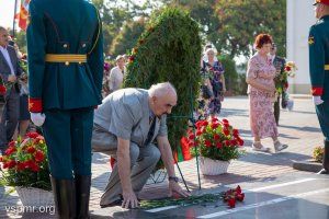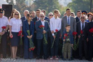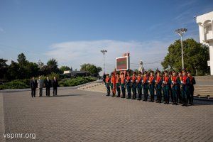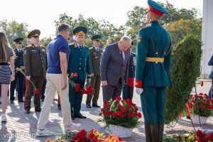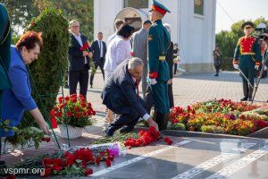 Following the top officials of the state, fresh flowers were laid at the Eternal Flame and granite slabs by deputies of the Supreme Council of the Pridnestrovian Moldavian Republic, heads of ministries and departments, representatives of the Tiraspol-Dubossary diocese, military personnel, and representatives of public organizations.