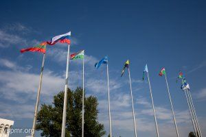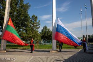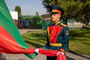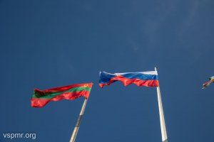 The national flags of the PMR and the Russian Federation traditionally reached the sky above the capital immediately after the solemn ceremony of laying flowers on Suvorov Square, to the sounds of the national anthem of the Pridnestrovian Moldavian Republic.