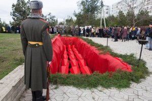 The remains of 436 innocent residents of Tiraspol were reburied the Day of Remembrance of the Victims of Political Repression in Tiraspol. One of the death-penalty case graves was found this summer during repairs at the Powder Cellar of the Tiraspol Fortress. The experts found that the found remains belong to the citizens, who were repressed and shot in 1937-1938. Today, after eighty years, their names were recollected. The first persons of the state, representatives of religious confessions, relatives of the deceased, townspeople took part in mourning events.