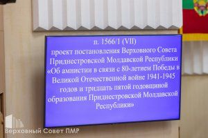 The Supreme Council of the Pridnestrovian Moldavian Republic adopted the draft Resolutions on amnesty in the final reading, taking into account the amendments, in connection with two anniversaries – the 80th anniversary of the Great Victory and the 35th anniversary of the formation of the Pridnestrovian Moldavian Republic.