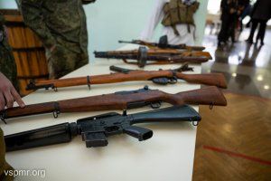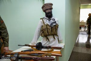 Activists of the Heirs of Victory youth movement set up a small exhibition in the hall in front of the hall, displaying original weapons and uniforms of that time, which were used during the Afghan war not only by Soviet soldiers, but also by the armed formations of the Afghan Mujahideen.