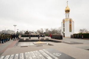 The memory of the fallen and deceased soldiers and officers was honored with a minute of silence. The presidential wreath was lowered to the Eternal Flame, stone slabs with the names of the fallen defenders and at the pedestals of monuments of Memorial of Glory in Tiraspol.