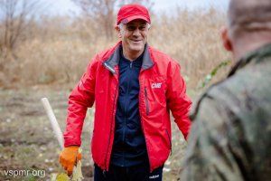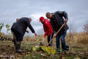 Handling a shovel is the order of the day for the Chairman of the Committee on Social Policy Sergei Cheban. He grew up in a village and was taught to work on the land from childhood. He quickly deepens the holes and plants small trees.