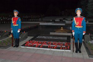A moment of silence ... At the eternal fire, the memorable dates "1941-1945" are shone with bright lights of candles. The candles of memory in the hands of the participants of the action, the night sky cuts the beam of the searchlight, carnations are aroused on the marble slabs, life-affirming, light music flows over the memorial and the gray Dniester ... Grateful Tiraspolians honor the memory of those who liberated our city and republic, Their lives.