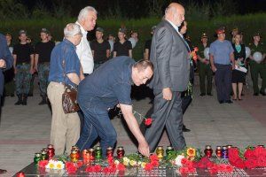 The Great Patriotic War began June 22, 1941 - the war of the Soviet people against the Nazi invaders. The heavy, bloody war lasted 1,418 days and nights. The general human losses of the Soviet side during the war amounted to 26 million people. Among them there are more than 130 thousand Pridnestrovians. Three years of occupation of our region, heavy losses, death and destruction ... The Great Patriotic War has left its mark in almost every home. Thousands of soldiers are buried in the mass graves of Pridnestrovian land, thousands are unknown and missing. Today veterans of the Great Patriotic War, prisoners of concentration camps, children of war, back workers, citizens, leadership of the republic, and deputies of the Supreme Council and members of the government laid flowers at the Memorial of Glory in memory of the heroic deed of the Soviet people and liberators.