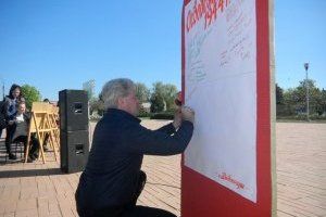 Ruslan Cheban, Peter Pasat and Vladimir Kostenko during the meeting presented the young Dubossary citizens with a passport of a citizen of Pridnestrovian Moldavian Republic. Participants of the meeting laid flowers to the graves of fallen soldiers, took part in the rally along the streets of the city to the memorable places of the Great Patriotic War, the end point of which was the Hill of Glory.