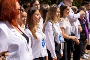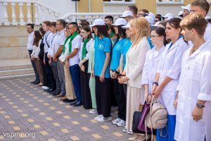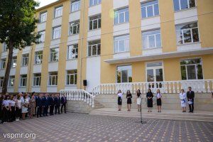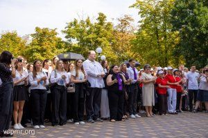 First-year students, who will be studying in the renovated classrooms, gathered at the doors of the building. Their lectures began immediately after the ceremony, but they listened to parting words from the top officials of the state until the bell rang for their first university classes.
