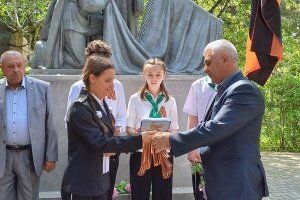 The action "St. George ribbon" was carried out by activists of the Dubossary territorial branch of the party "Obnovlenie". The start of the event takes place every year in different settlements of the Dubossary district at memorial complexes where Soviet soldiers-liberators are buried. Schoolchildren in the village of Dubovo were also given booklets with information about the liberation of the city of Dubossary and villages of the Dubossary district in April 1944 along with the Victory symbols.