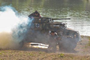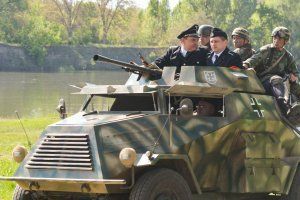 After the reconstruction of the events of the Great Patriotic War, the special forces prepared a speech. Anyone can get acquainted with samples of military equipment, small arms of different eras and retro cars.