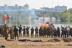 The World War II battle was reconstructed on the capital's beach, on May 3. More than 70 people took part in it - servicemen of the OGRF, participants of the “Heirs of Victories” movement, students of the Tiraspol Suvorov Military School. President Vadim Krasnoselsky, Chairman of the Supreme Council Alexander Korshunov, Chairman of the Supreme Council for Public Associations, Representatives and Youth Authorities Igor Buga, residents and guests ,