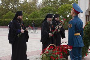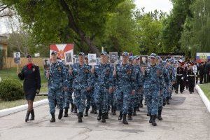 Children and adults, having raised the portraits of their heroes high above their heads, passed by a single formation. The final point of the procession is the military camp of the Operative Group of Russian Forces.