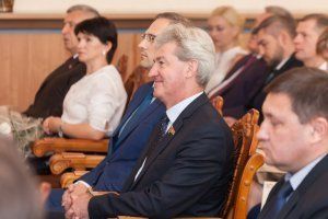Veterans and workers of the department were congratulated by deputies of the Supreme Council, members of the Government, representatives of cities and districts. On behalf of the head of state, Mikhail Burla, Chairman of the Parliamentary Committee on Education, Science and Culture, presented his welcome address to the staff of the control agency.